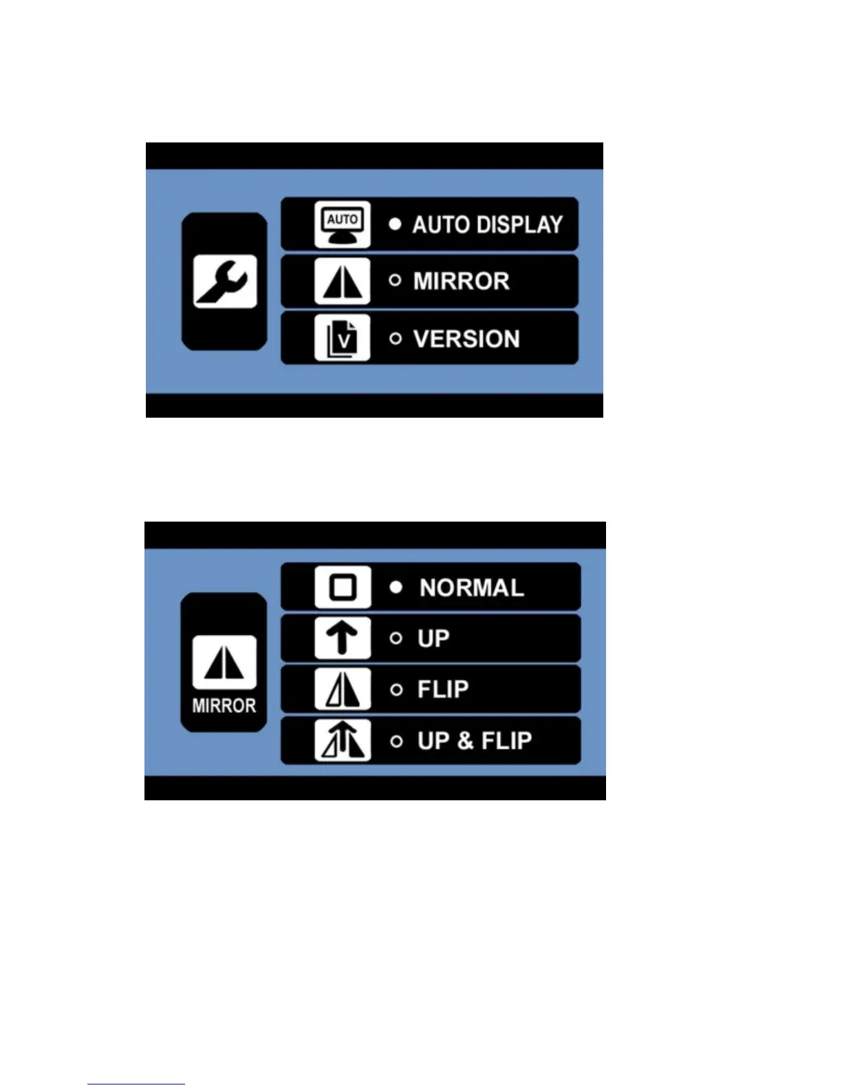 3. Press the DOWN button; then press the POWER / ENTER button to enter the mirror menu.