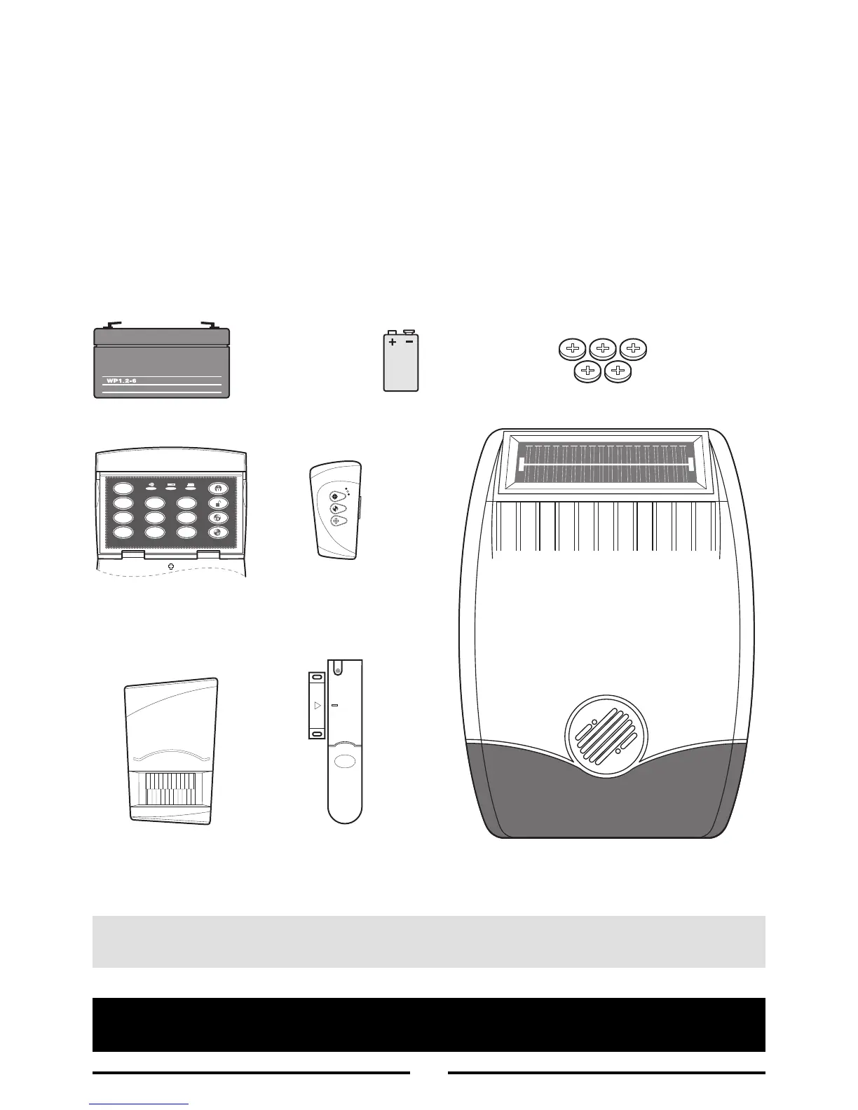 Important: Kit contents as Alarm System configuration table (top of page).