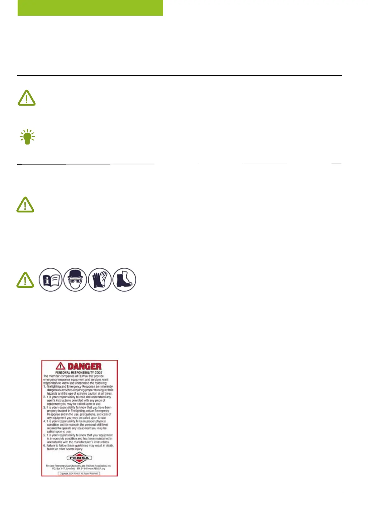 and safety precautions stated in this manual. Operator safety depends on users being properly trained by the Authority having jurisdiction and