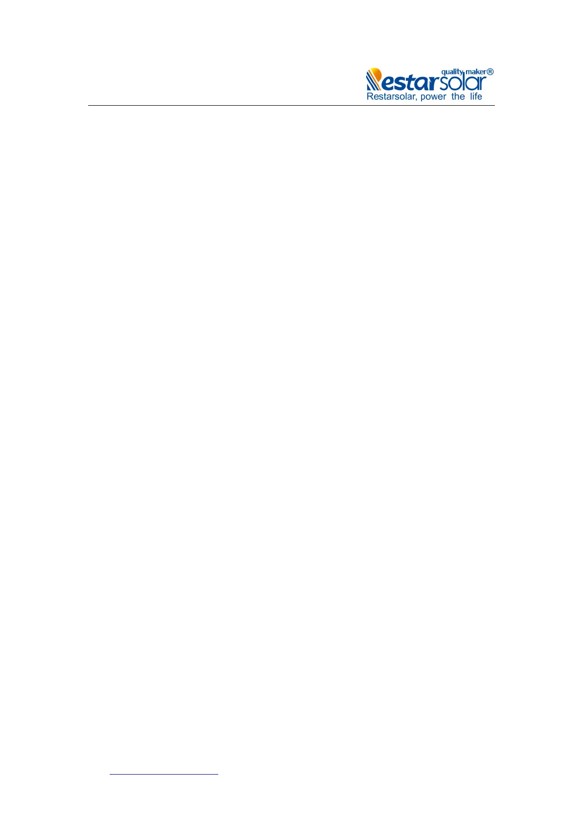 Please consult the Restar Solar Renewable Energy Co.,Ltd technical support department for more