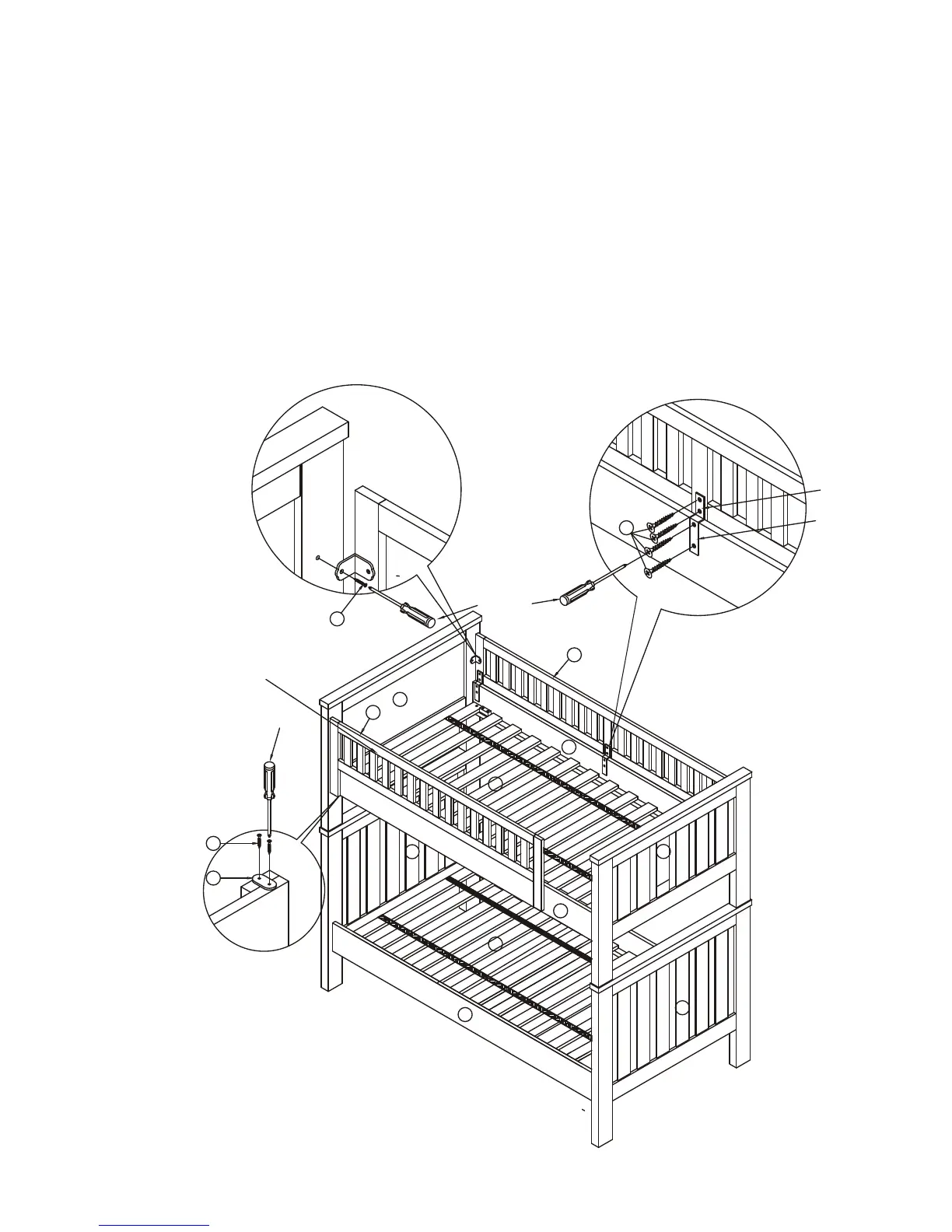 2.Attach the L brackets (S) on the ends of the guardrails to posts of the upper bunk by using the