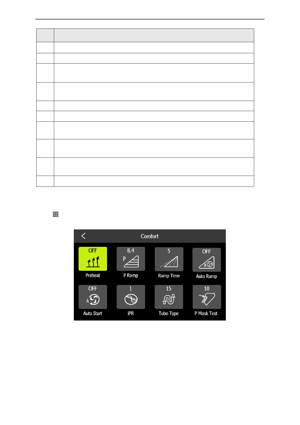 Press key in the clinical standby interface to enter clinical comfort settings interface.