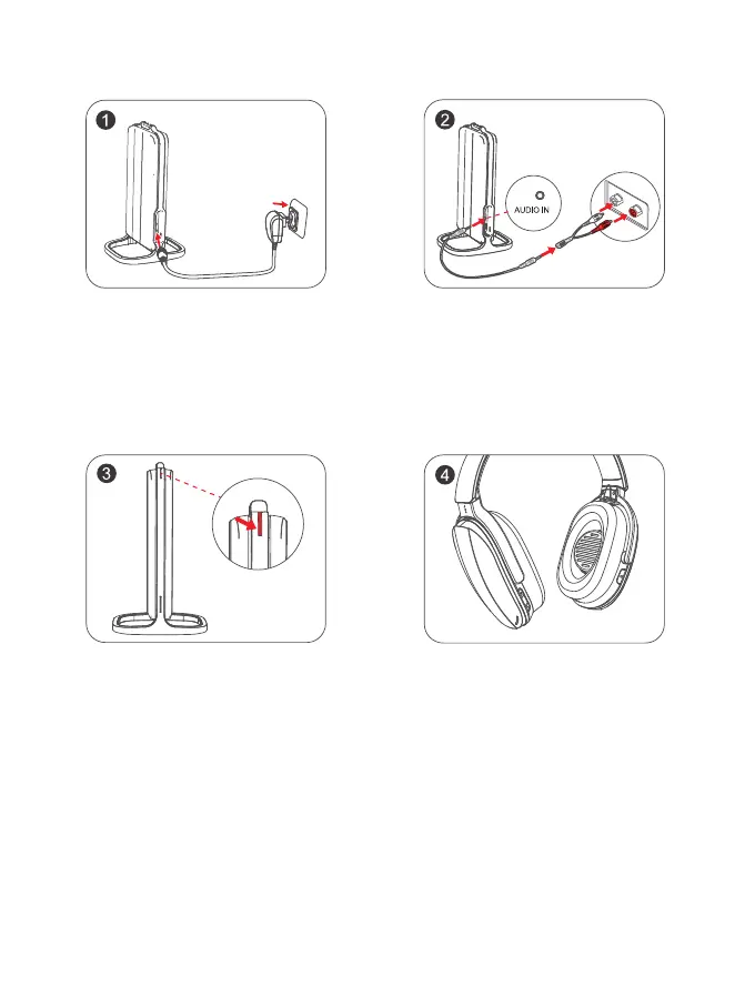 light flashing slowly (0.5s on/0.5s off), and the headphones will automatically shut down after 5 minutes of
