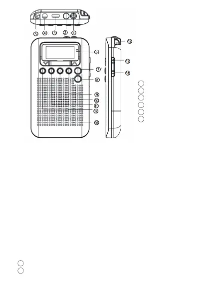 ①POWER/SLEEP:For turning on and off the radio.adjust automatic
