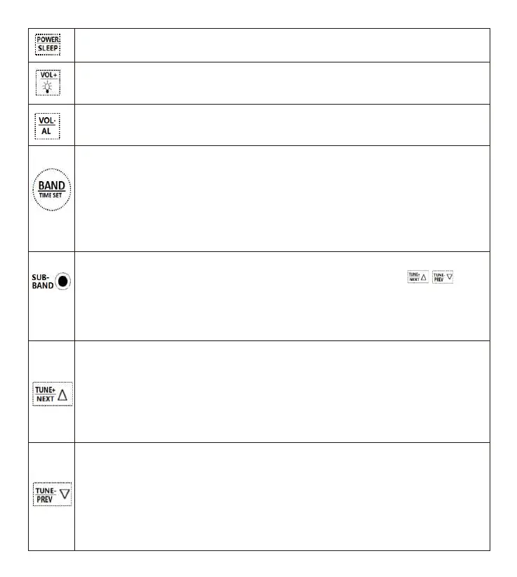 3 : Lorsque la radio est allumée : pression légère pour basculer entre FM/VHF/MW/SW/AIR /WB
