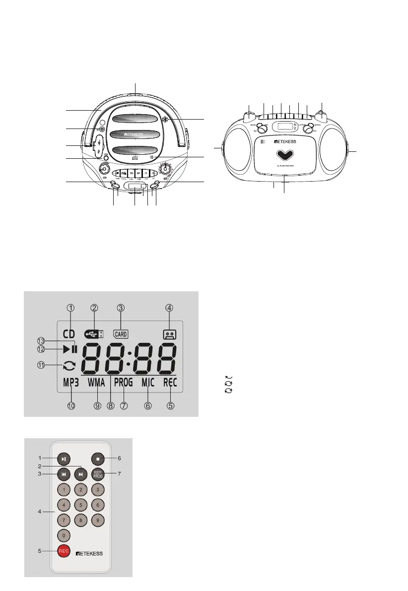 19.Pause button (Cassette)