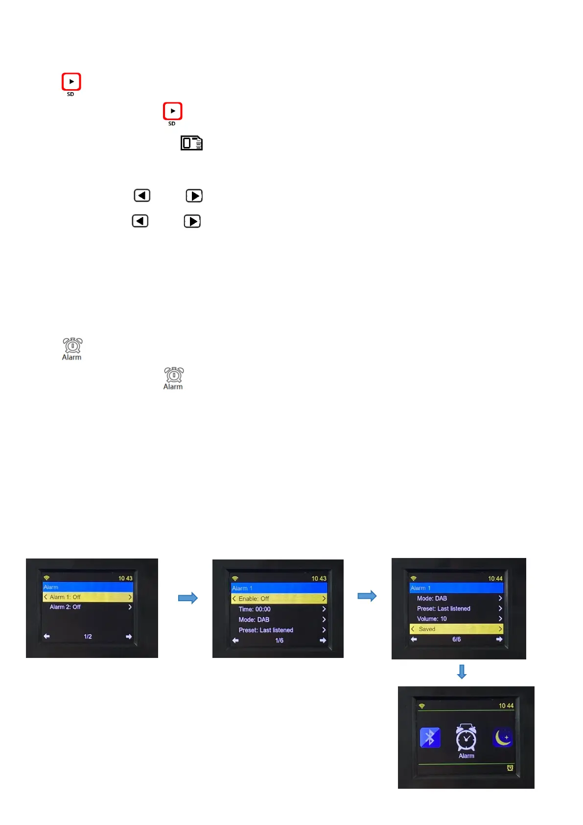 When the alarm clock is turned on, the alarm icon will be displayed in the lower right corner, as