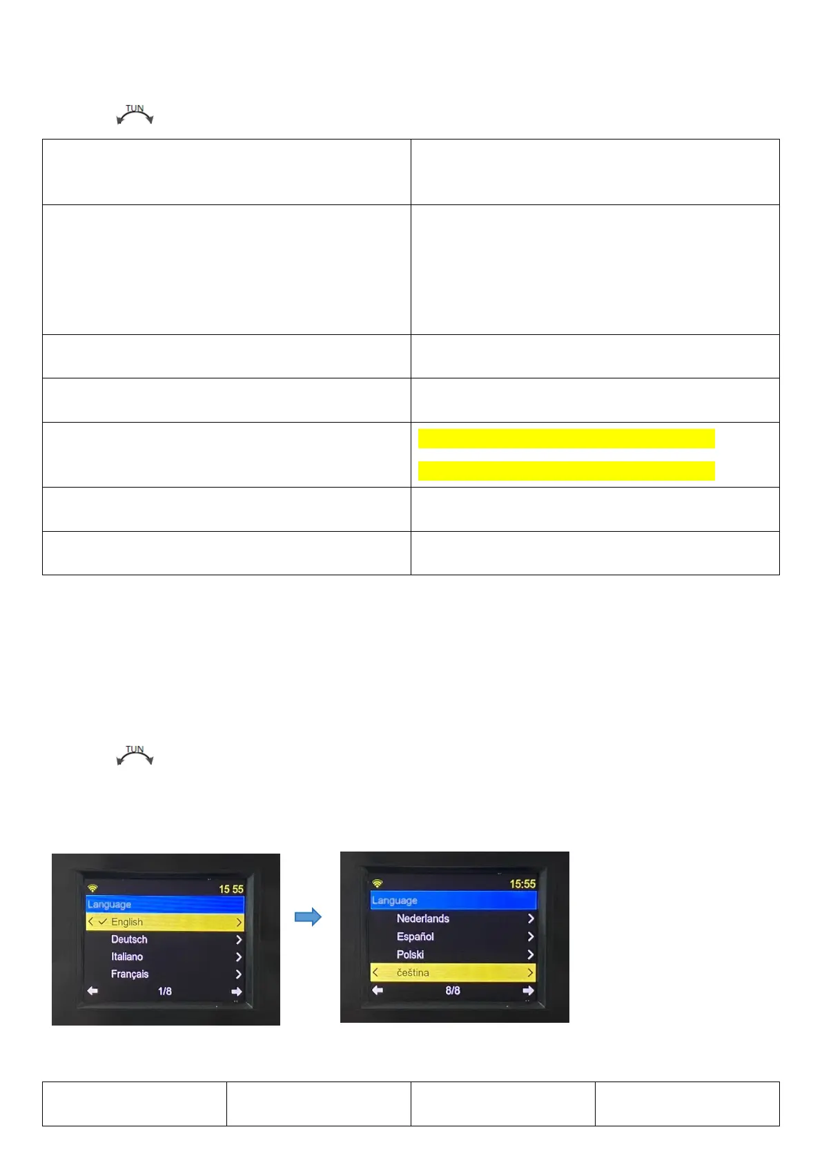 There are eight languages to choose from, select and press [ENTER] to confirm.