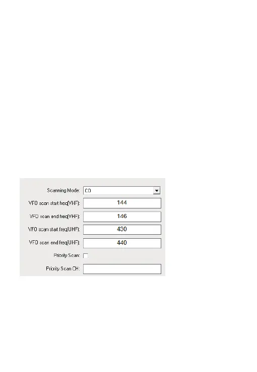 2)En mode VFO, appuyez brièvement sur le bouton [*SCAN] pour commencer le scan de