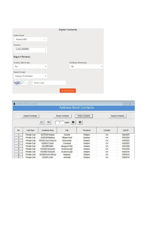Téléchargez la feuille CSV des contacts sur la radio via le CPS .