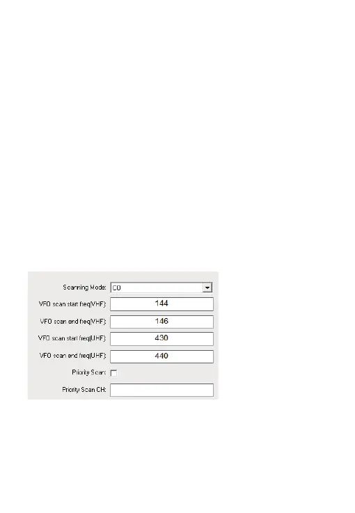 2)En el modo VFO, presione brevemente el botón [*SCAN] para comenzar la exploración de