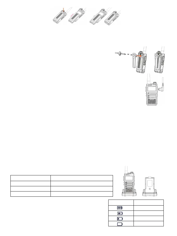 1. Allineare la batteria con il vano della batteria sul retro del walkie-talkie.