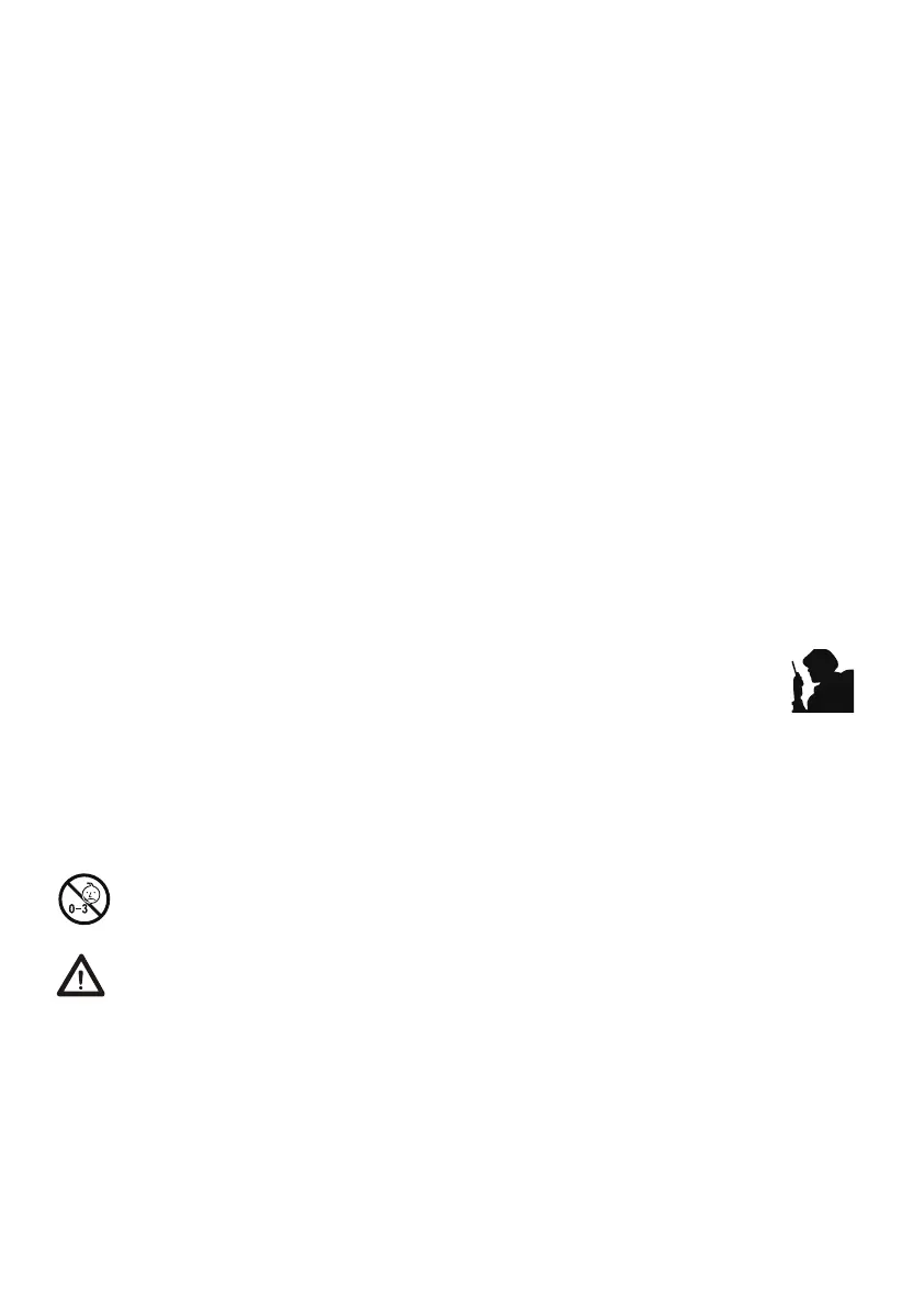 • Schalten Sie Ihr Radio aus, wenn Sie sich an Bord eines Flugzeugs befinden. Jede Verwendung eines Funkgeräts muss in