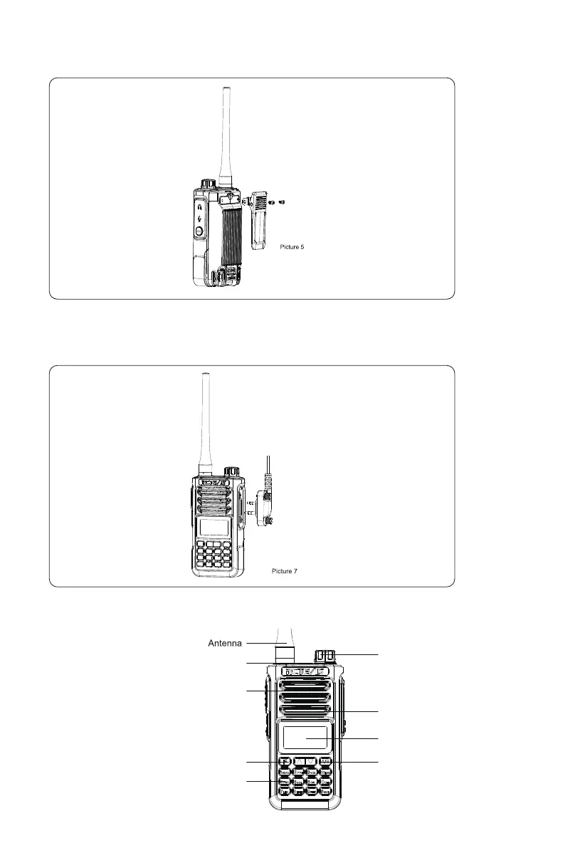 Allineare i due attacchi della clip da cintura e i due fori delle radio, fissarli con le viti M2.5*5 in dotazione. Allentare il set di viti per rimuovere