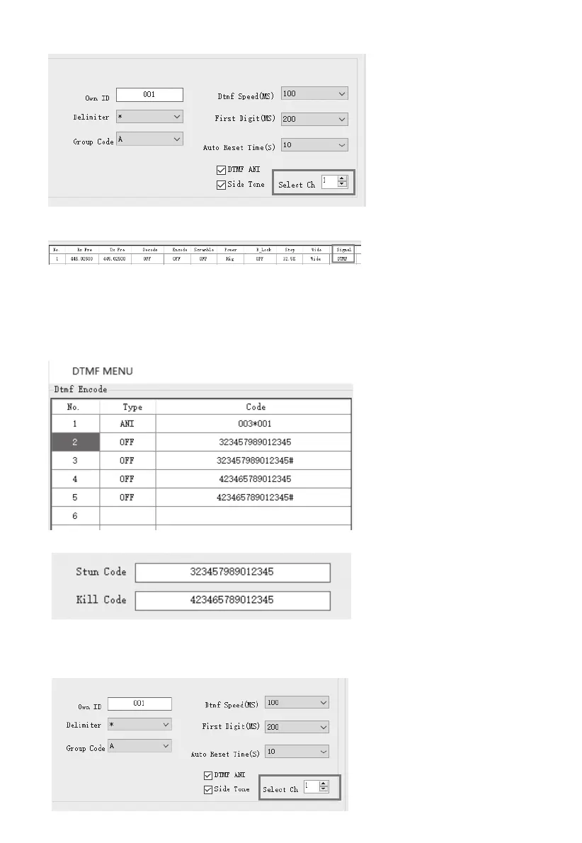 Select CH: il canale predefinito quando il DTMF sta chiamando.