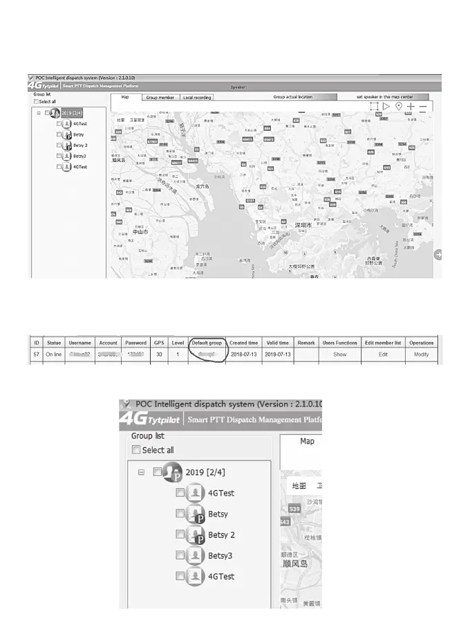 l'appel privé / obtenir l'emplacement / obtenir la piste.Remarque: Le "P" signifie que la radio est dans ce groupe.