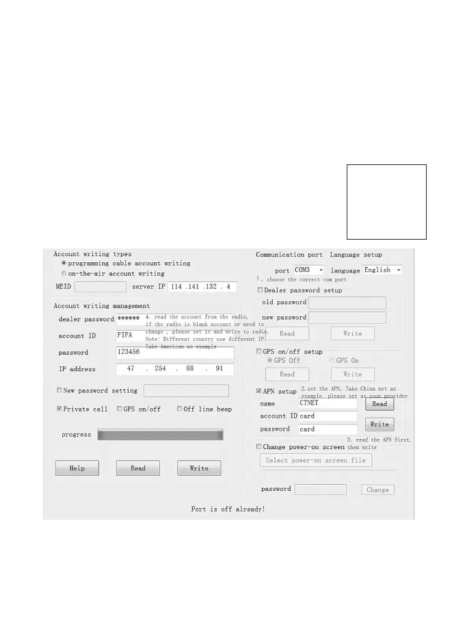 (3)Dopo aver terminato l'impostazione, premere write. Quindi, puoi vedere il nome della radio biredizionale sullo