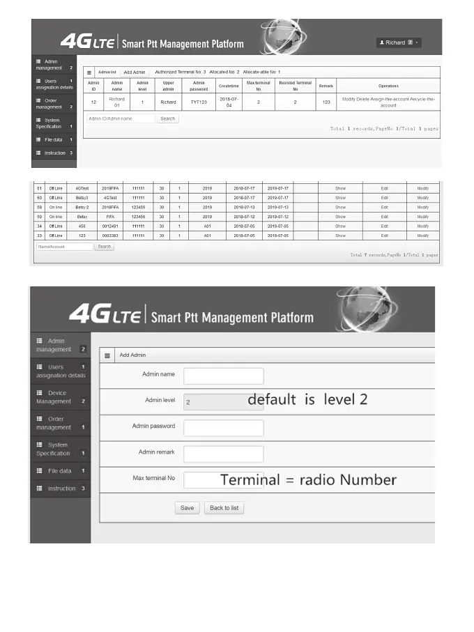 1.Aggiungere l'amministratore e impostare il numero del terminale