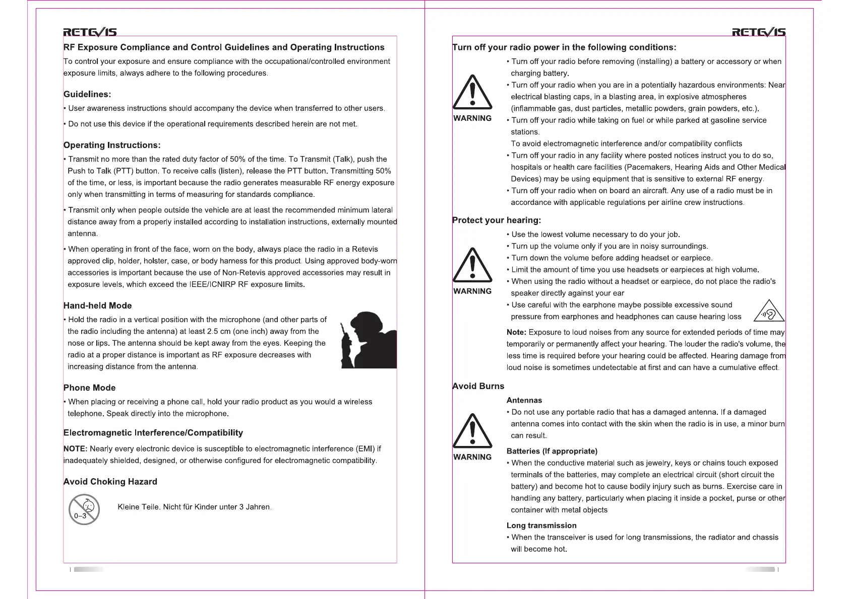 Retevis RB29 - RF Exposure Compliance and Control Guidelines; Guidelines; Operating Instructions; Hand-held Mode