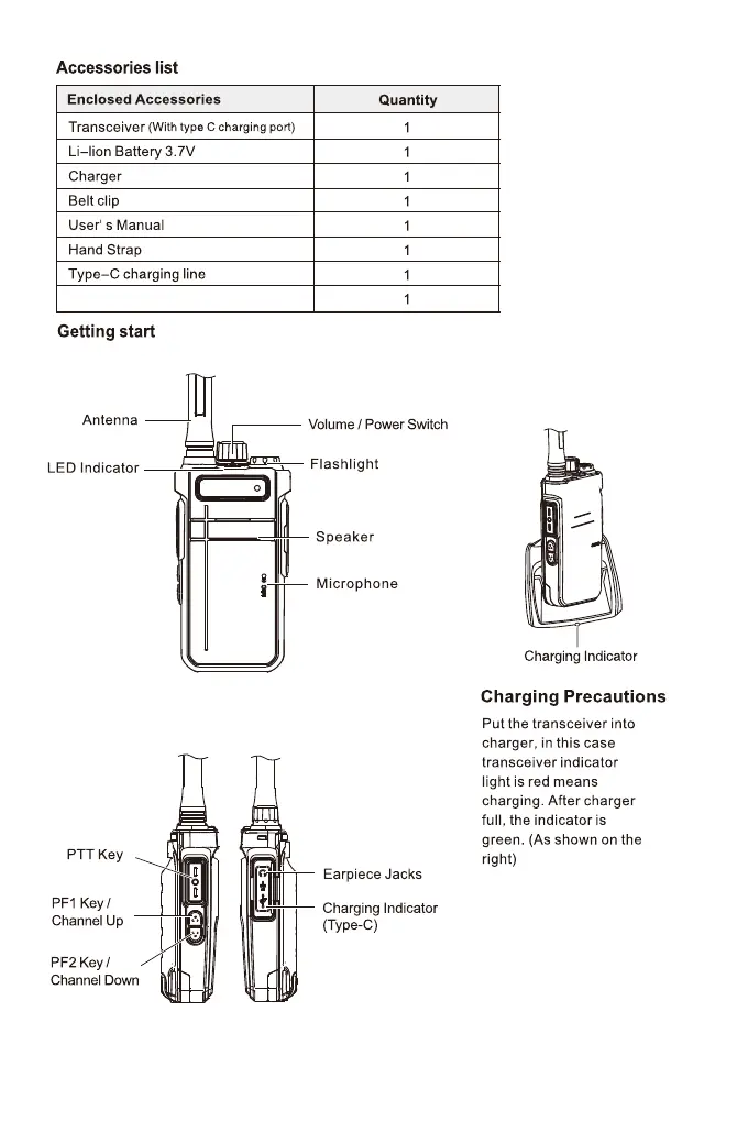 Retevis RB37 - Getting Started and Charging; Charging Precautions