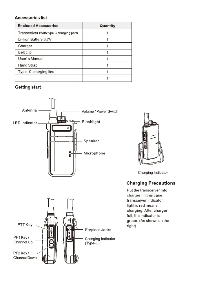 Retevis RB637 - Accessories and Getting Started; Enclosed Accessories; Device Components and Charging