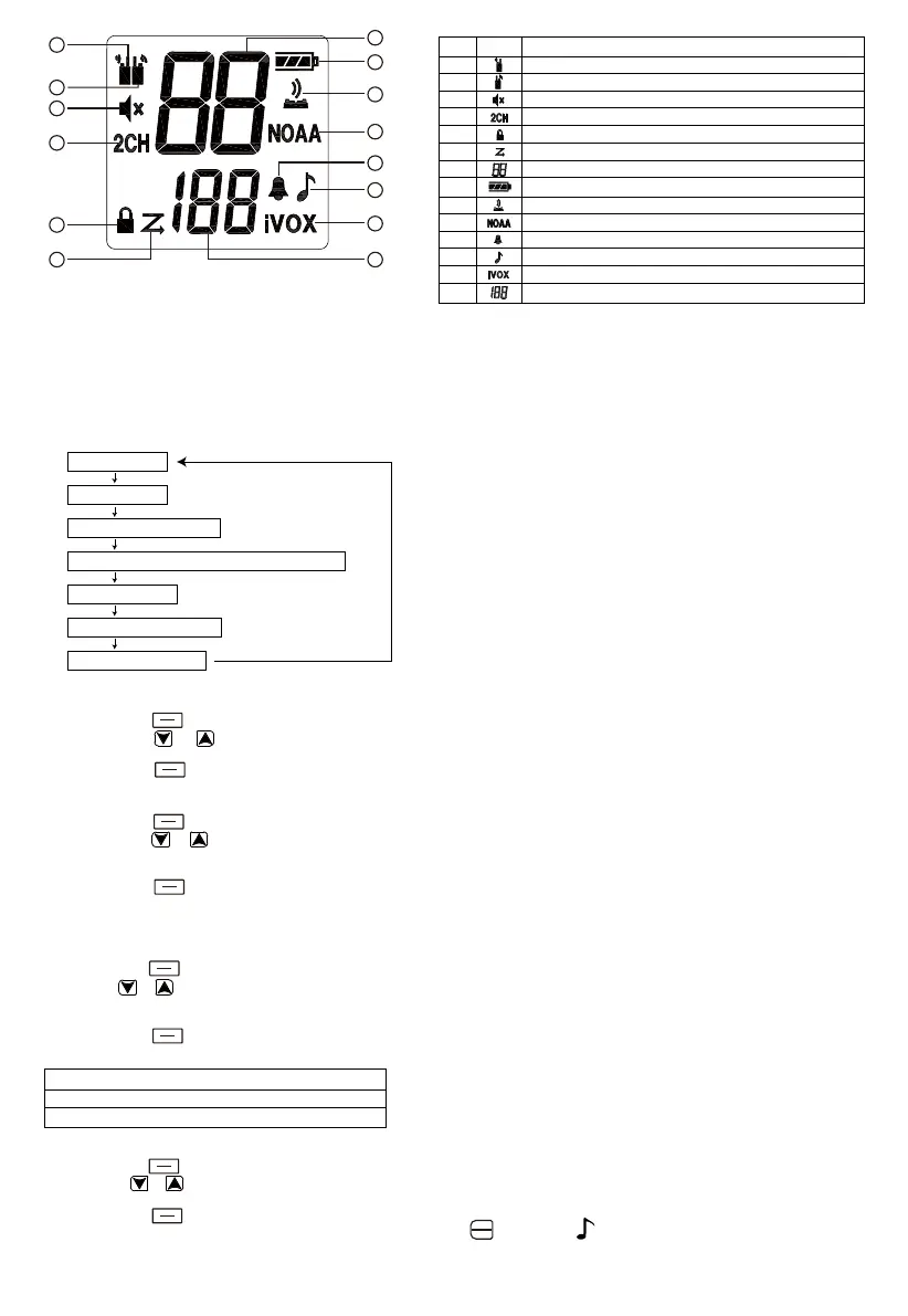 1.Short press the button, when the VOX icon is displayed on the LCD screen, connect the audio accessory and display VOX icon.