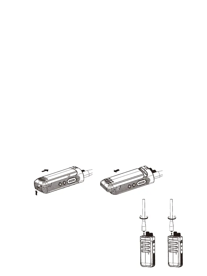 batterie, faites le bouton complètement pour verrouiller la batterie. Pour retirer la batterie, éteignez la radio, puis