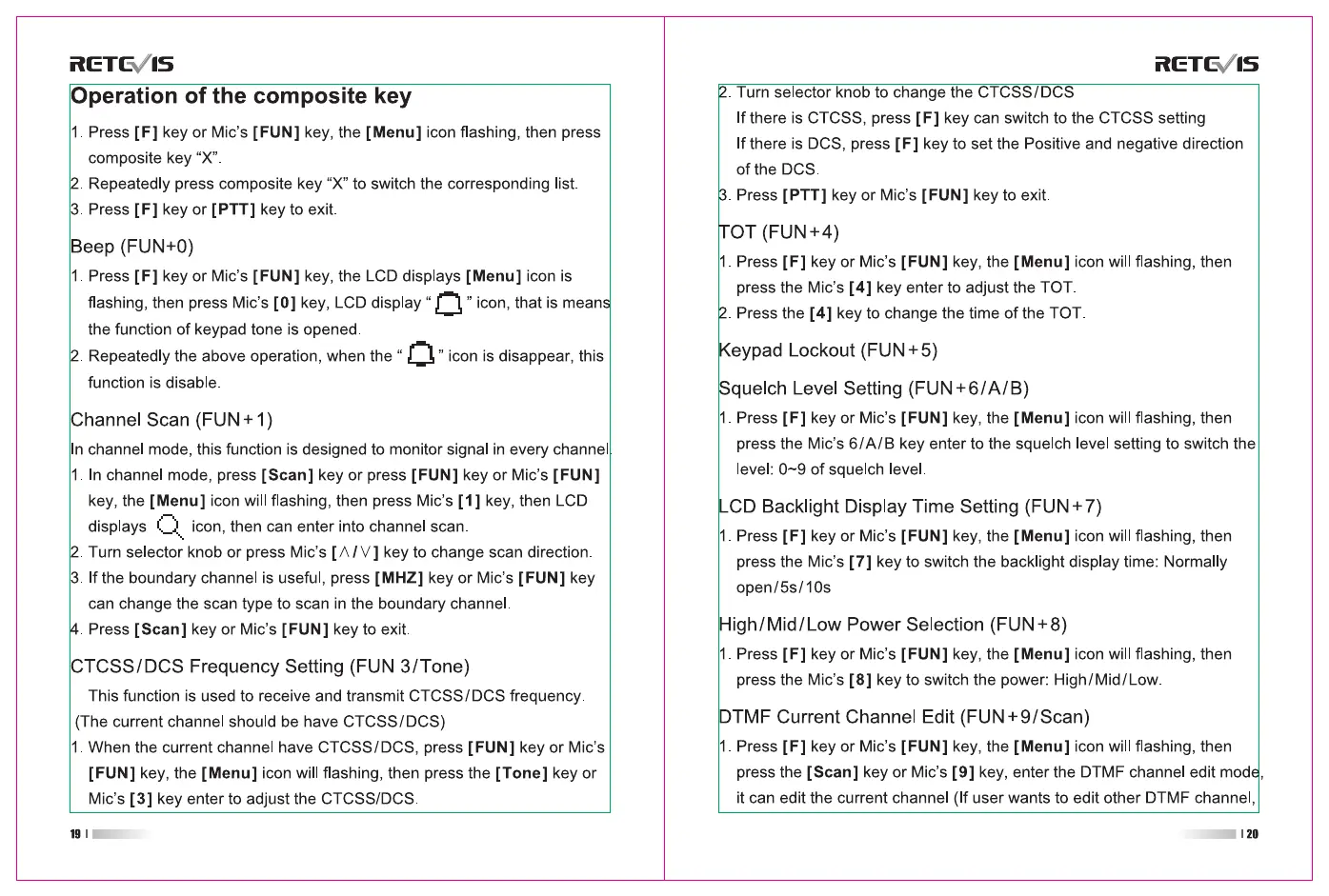 Retevis RB86 - Advanced Composite Key Functions; Channel Copy, Talk Around, Reverse Frequency; Menu Navigation and Settings Introduction