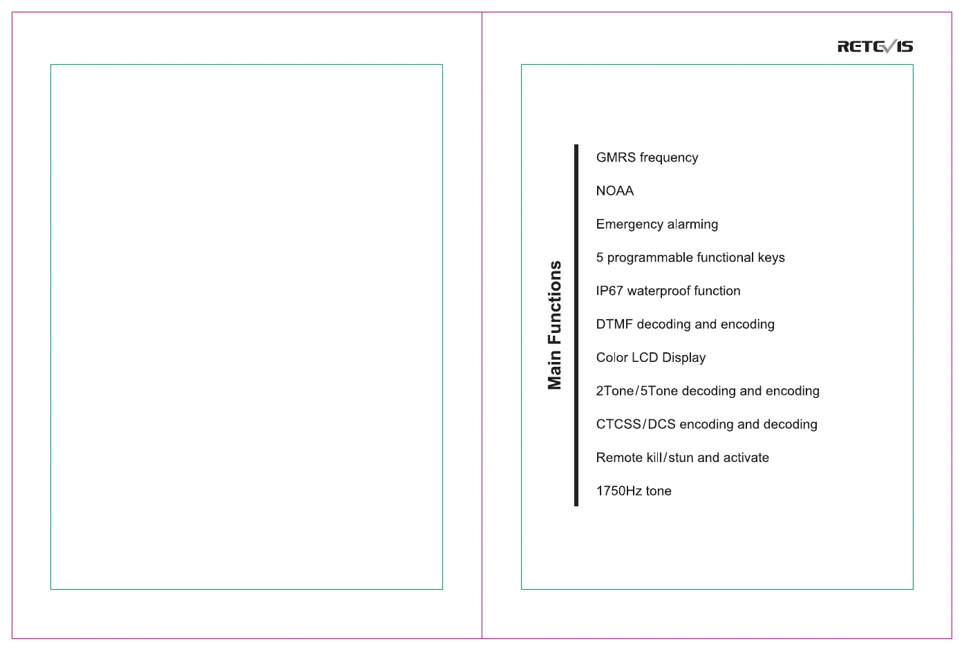 Retevis RB86 - Main Functions; GMRS Frequency and NOAA; Signaling Features; Durability and Security