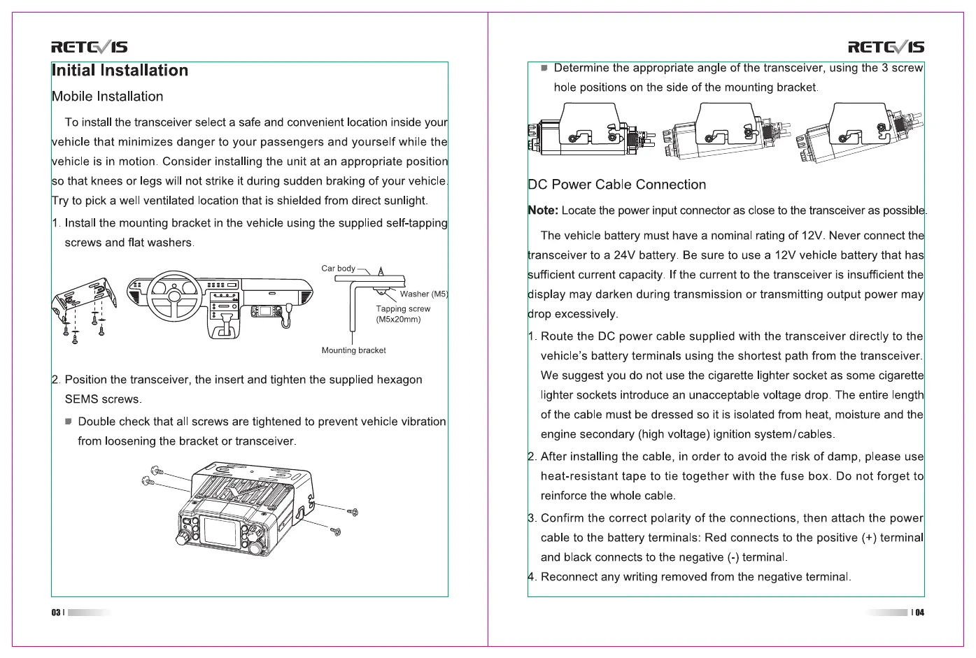 Retevis RB86 - Initial Installation; Mobile Installation Guide; DC Power Cable Connection
