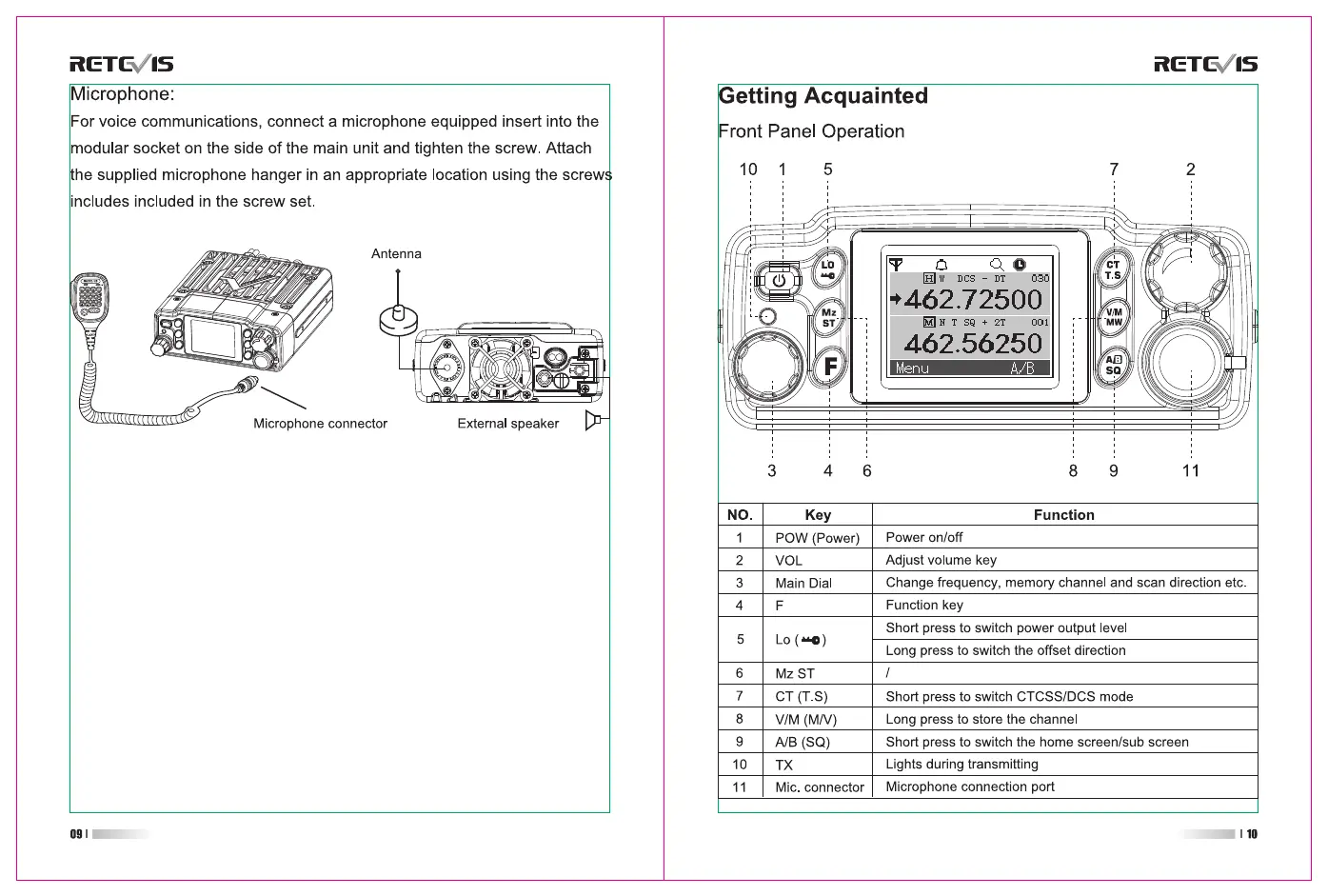 Retevis RB86 - Getting Acquainted; Front Panel Operation