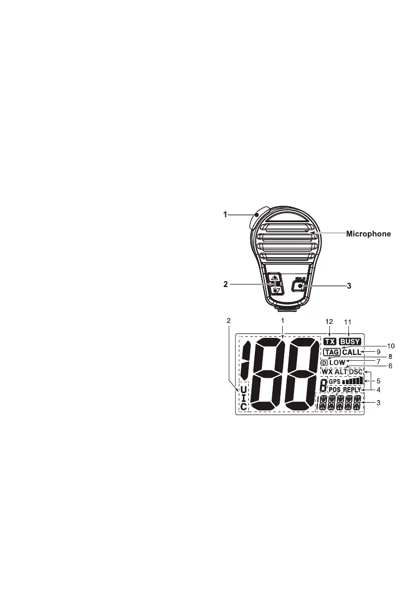 -> "WX ALT" erscheint, wenn die Wetteralarmfunktion verwendet wird; blinkt, wenn ein Warnton empfangen wird.
