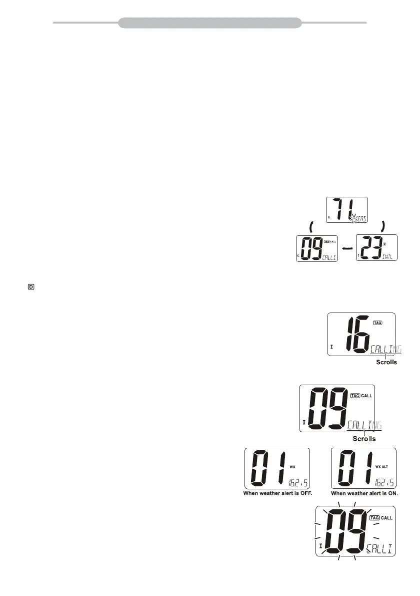 • "WX ALT" erscheint, wenn die Wetteralarmfunktion verwendet wird.