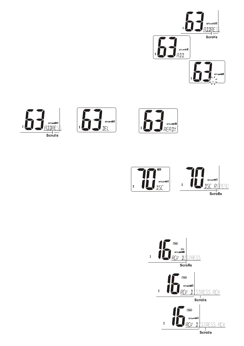 2. "DSC" erscheint und "RCV DISTRESS" scrollt am Kanalkommentarindikator,