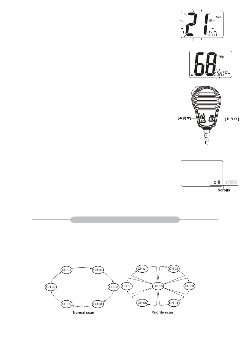 El escaneo prioritario busca a través de todos los canales TAG en secuencia mientras monitorea el Canal 16.