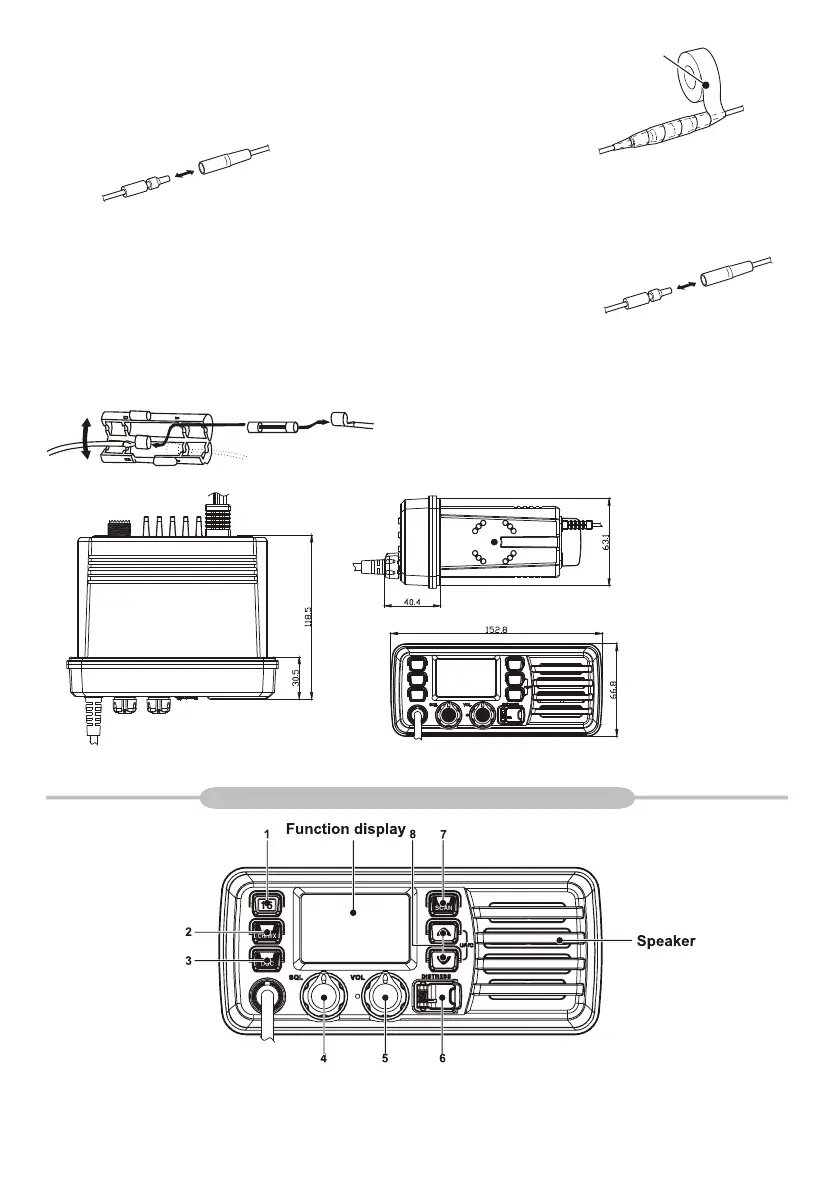 Source d'alimentation DC. Ne vous connectez pas la batterie de stockage 24V. Si un courant insuffisant est fourni à la radio, l'écran peut
