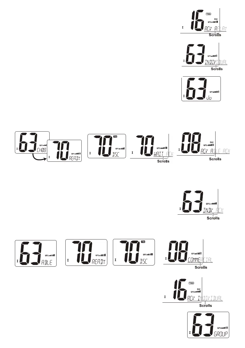 2. "DSC* apparaît et *RCV INDIVIDUAL' défile à l'indicateur de commentaire de canal.