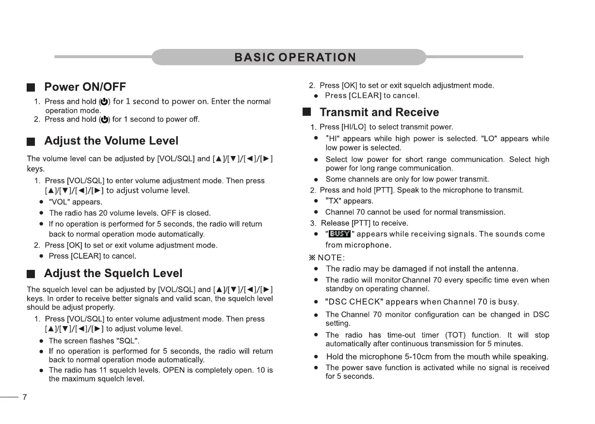 Retevis RM40 - BASIC OPERATION; Power ON;OFF; Adjust the Volume Level; Transmit and Receive