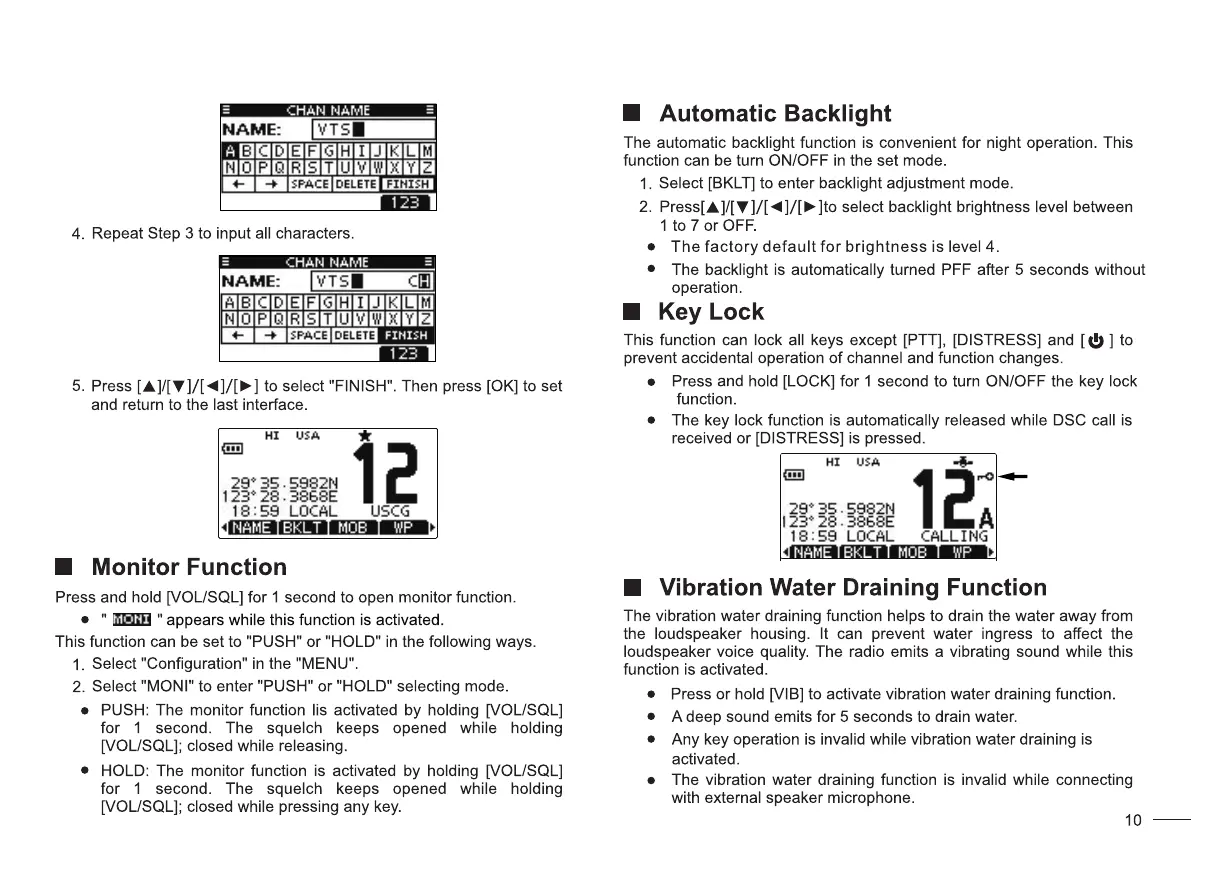 Retevis RM40 - Automatic Backlight; Key Lock; Monitor Function; Vibration Water Draining Function