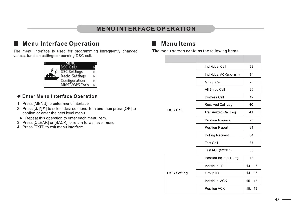 Retevis RM40 - MENU INTERFACE OPERATION; Menu Interface Operation; Menu Items