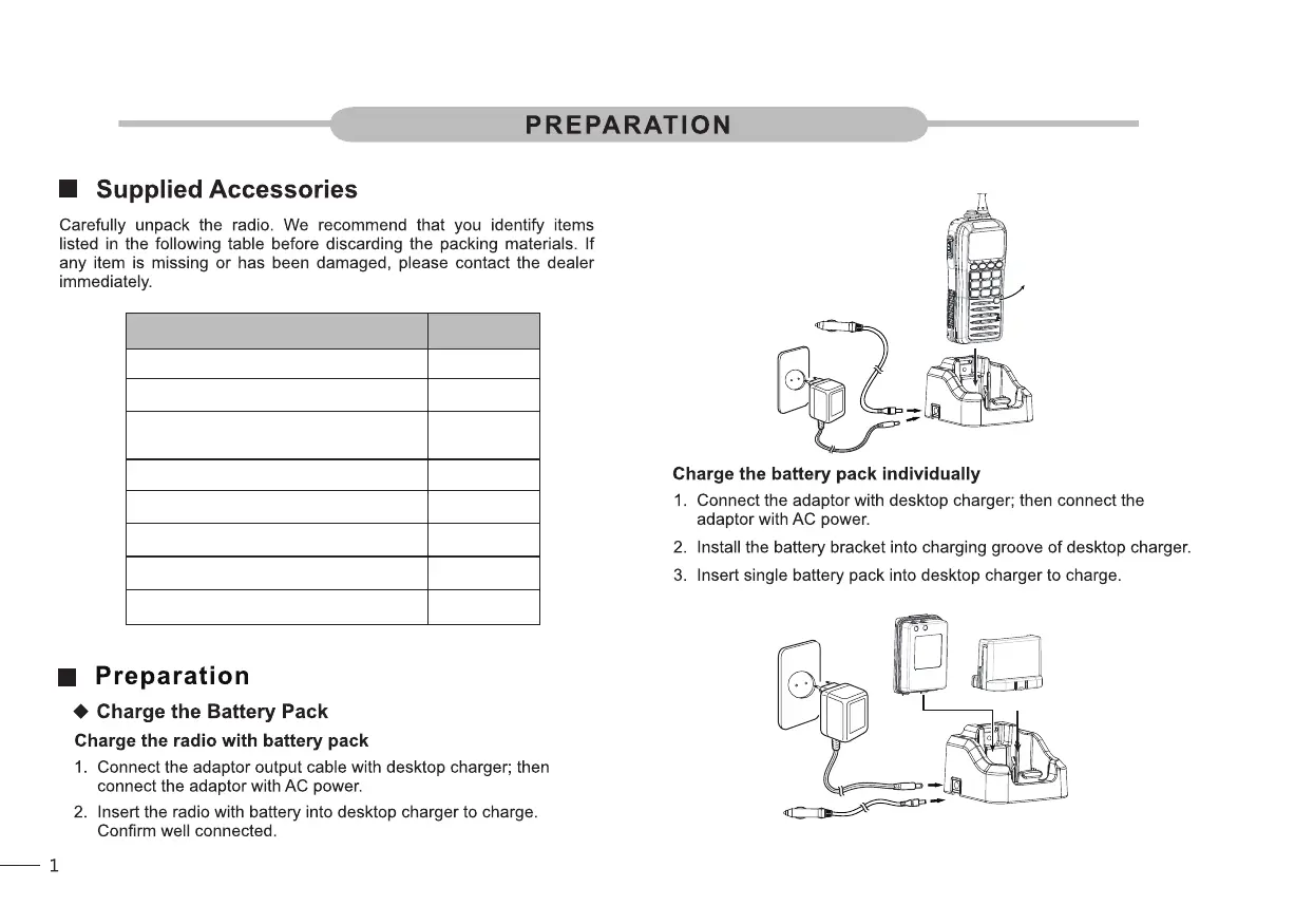 Retevis RM40 - PREPARATION; Supplied Accessories; Charge the Battery Pack