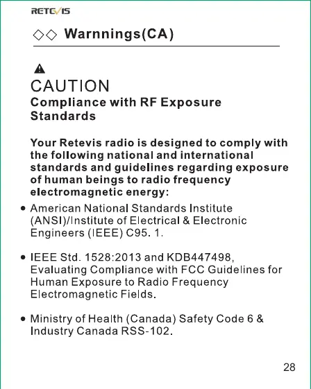 Retevis RT22 - Canadian RF Exposure Standards (CA)