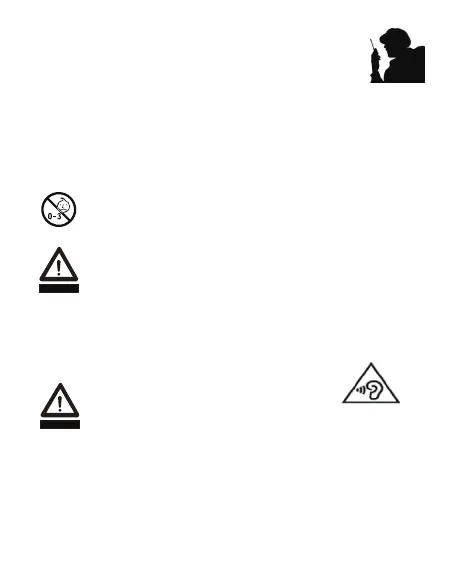 • When using the radio without a headset or earpiece, do not place the radio's speaker directly
