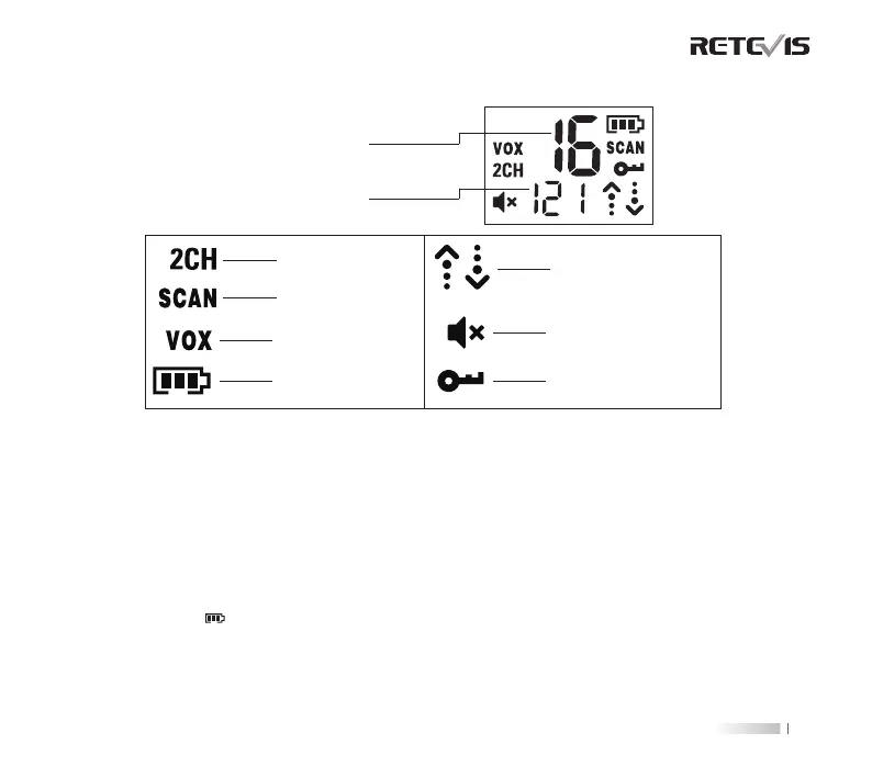 The number of bars ( ) on the radio battery icon shown indicates the charge remaining in the battery. When the