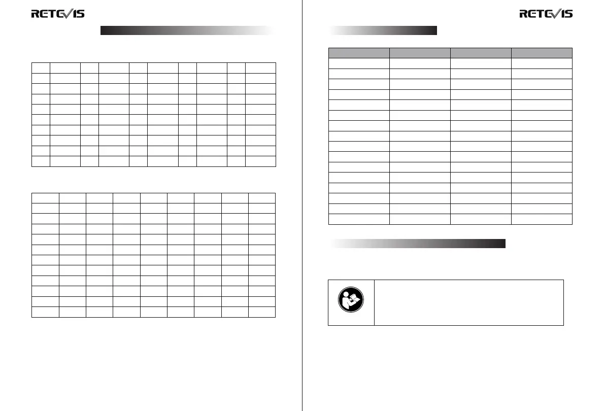 CTCSS/DCS CHAÎNE ET FRÉQUENCES