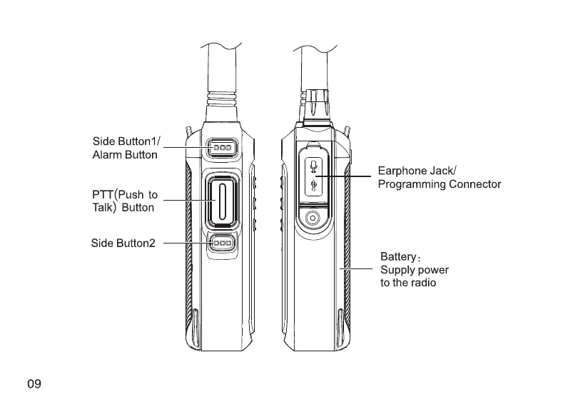 Retevis RT76P - Side View Features; Side Controls and Ports