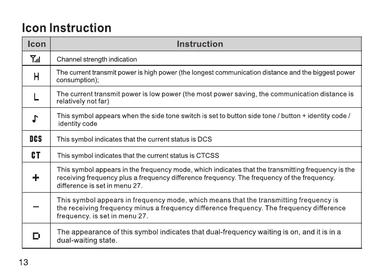 Retevis RT76P - Icon Instruction; Common Icon Meanings