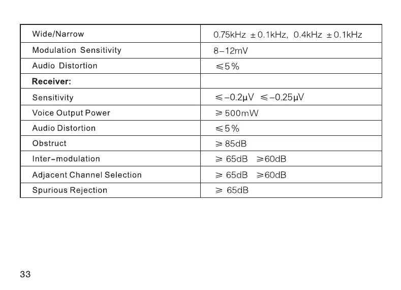 Retevis RT76P - Technical Specifications (Part 2); Receiver Specifications