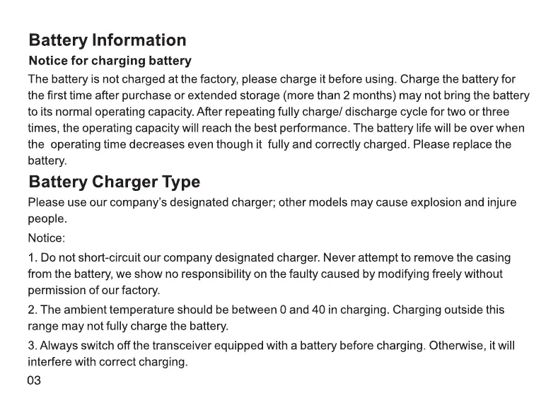 Retevis RT76P - Battery Charging Information; Charging Notices; Charger Type Advice