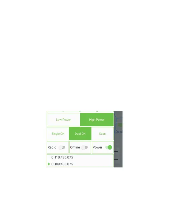 Open the mobile app, click on the [Power] section and turn it to gray to turn off the car radio.